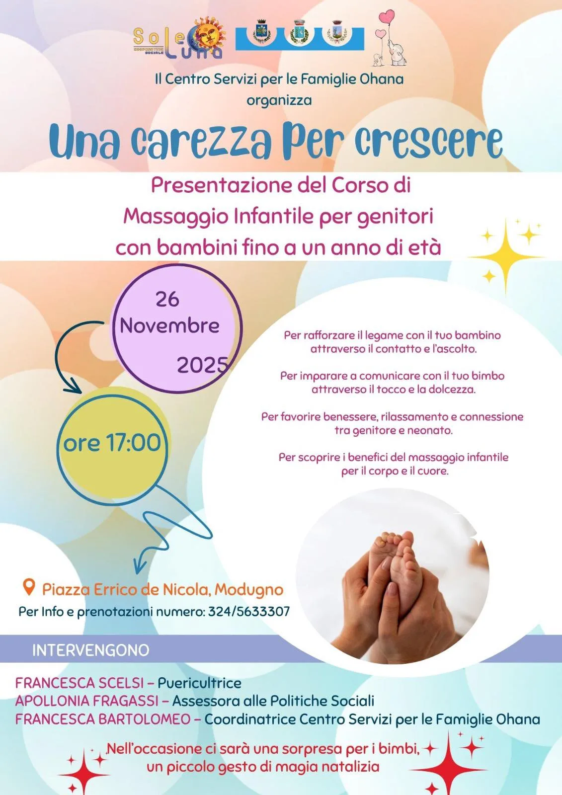 Un momento dedicato alla tenerezza, al contatto e alla crescita condivisa. Ohana Centro Servizi per le Famiglie presenta “Una carezza per crescere”, l’incontro di presentazione del corso di massaggio infantile rivolto ai genitori con bambini fino a un anno di età.